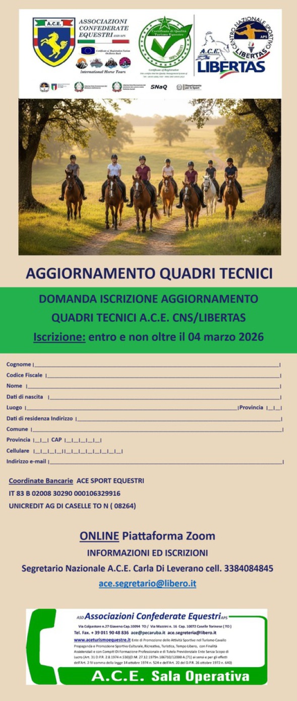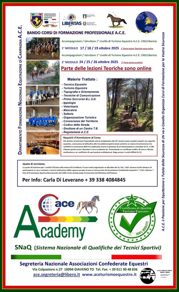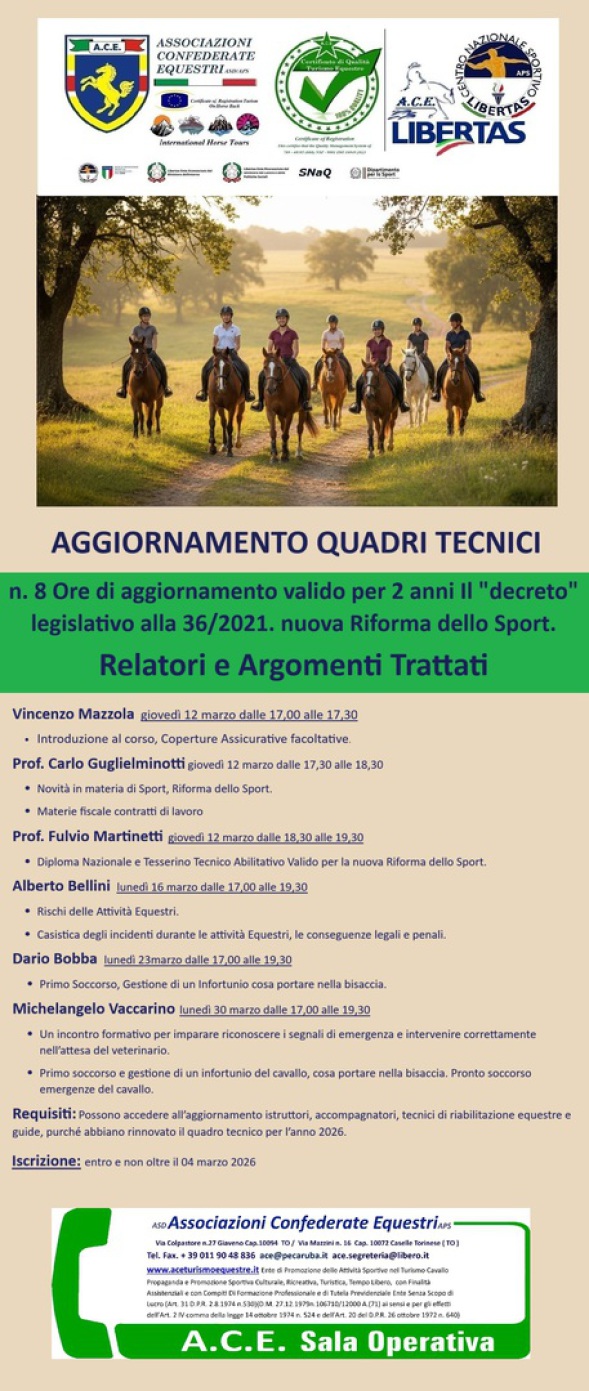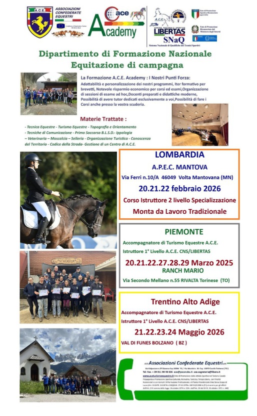 L’A.C.E. è da sempre impegnata sul versante della formazione per migliorare la preparazione dei propri cavalieri e dei Quadri Tecnici.