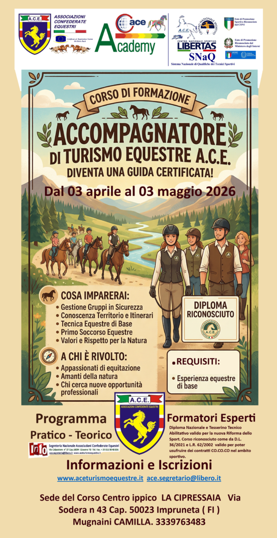 Il Corso di Accompagnatore di Turismo Equestre è un corso dedicato alle persone che vogliono diventare Accompagnatori per il Turismo Equestre.